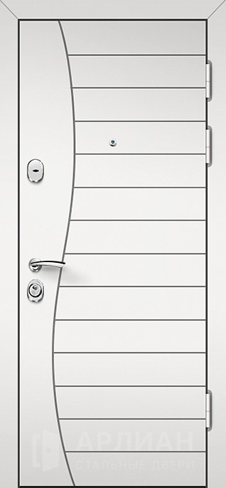Белая дверь входная металлическая с зеркалом внутри и усиленными петлями №76