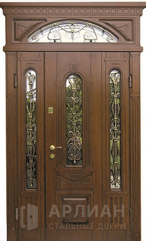 Входная дверь с ковкой и стеклом №414